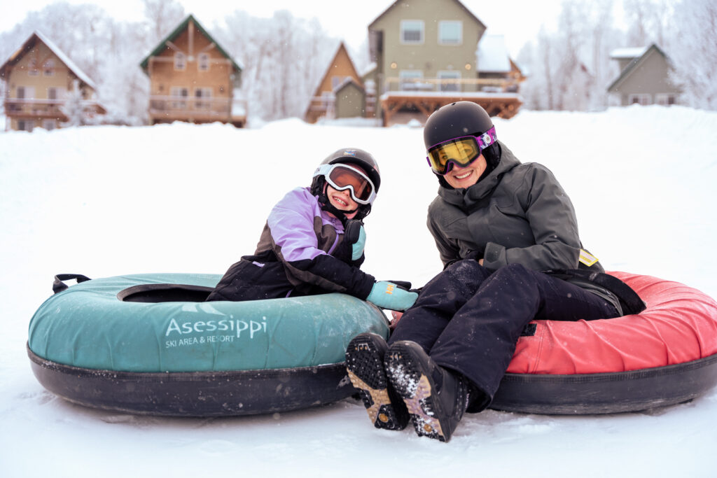 As with any winter activity in Asessippi, we recommend dressing to conditions for safety and comfort. Even on our milder days, temperatures can be quite chilly after prolonged exposure to the elements. For activities like tubing, we recommend water-resistant outerwear that is suitable for colder temperatures, including essentials like hats, mitts/gloves, and boots (not ski boots!)
